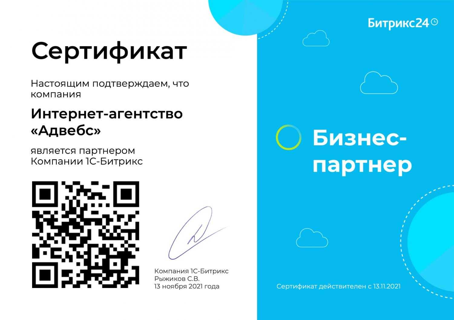 Сертификат партнера Битрикс24