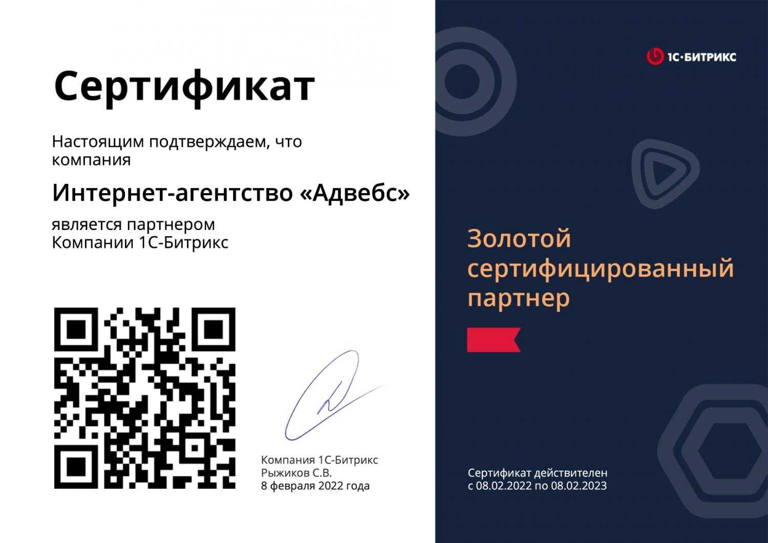 Золотой партнер 1С-Битрикс
