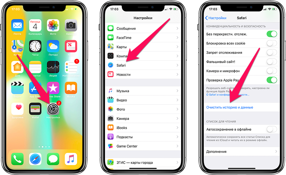 Если у вас Iphone или Ipad, то можно в каждом браузере удалять кеш через его внутренние настройки (переходить в закладку "Настройки" и там очищать кеш). Чтобы очистить кеш на можно через общие настройки устройства выбрать нужную программу и быстро очистить весь кеш и все сохраненные данные как показано на скриншоте ниже: