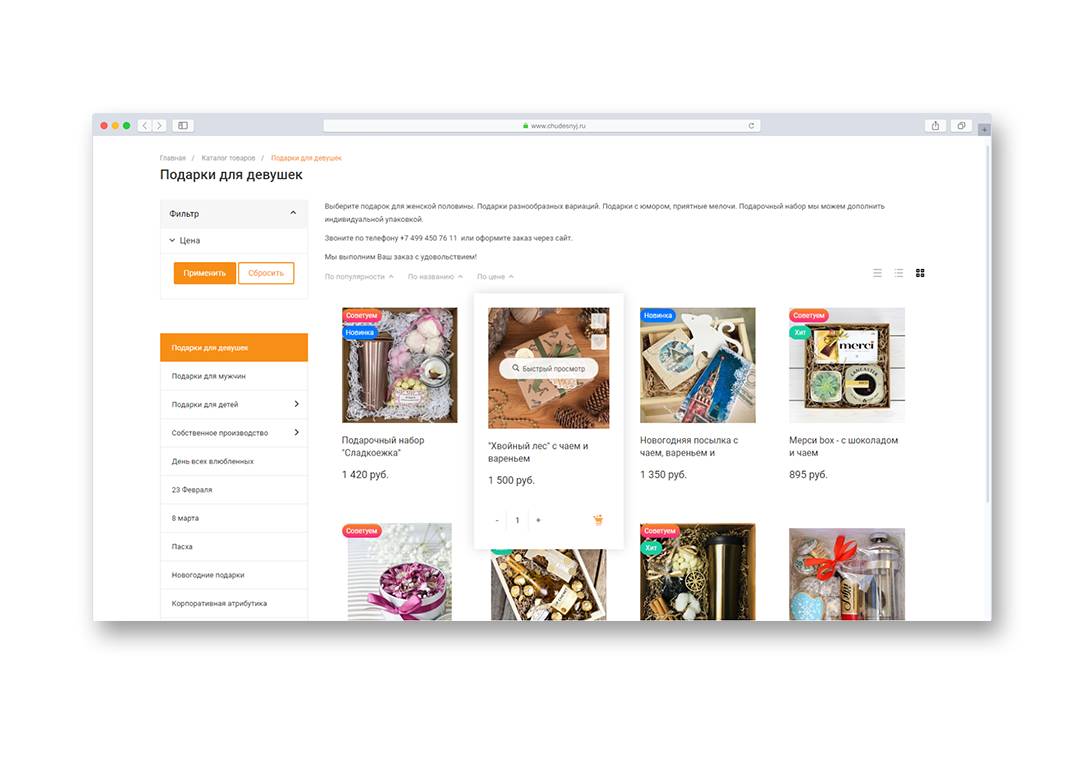 Наше решение органично впишется в любой бизнес: детские товары, продукты питания, подарки, мебель или программное обеспечение. Интернет-магазин адаптируется под под ваше направление и обеспечит максимальную эффективность.