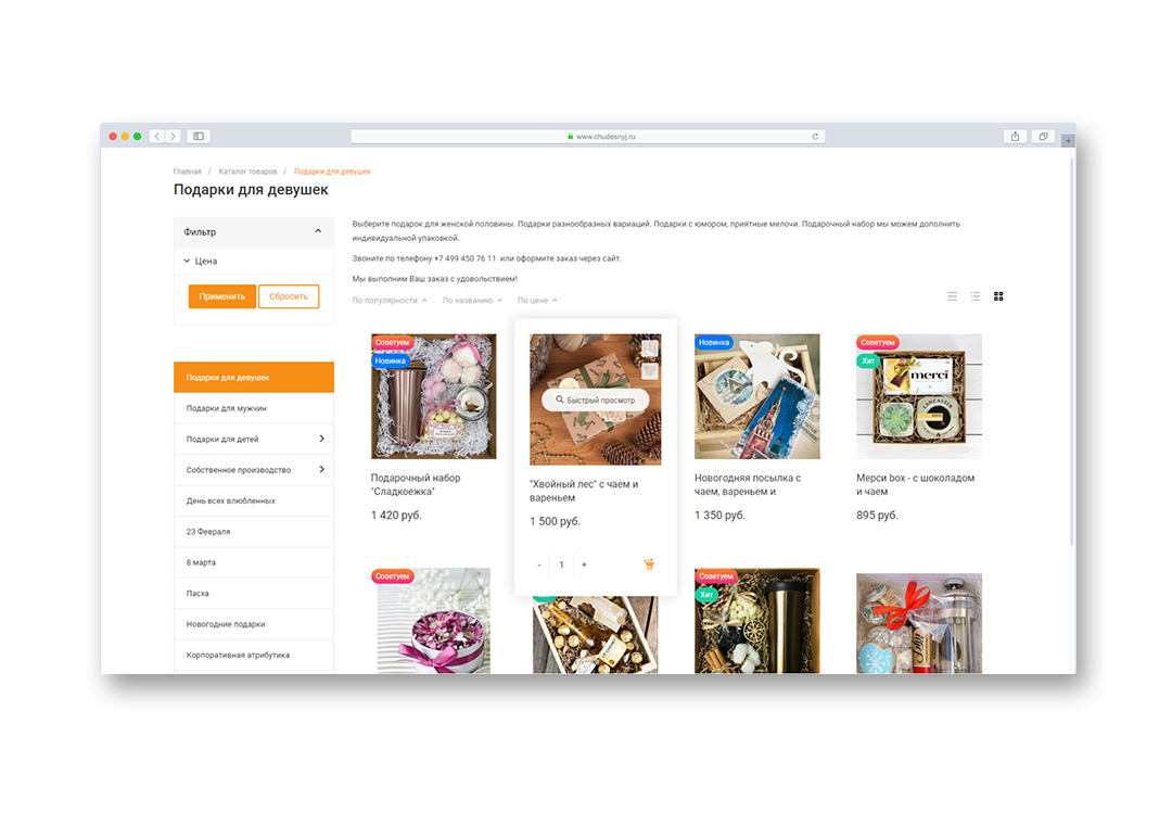 Загрузим товары из 1С, из прайсов поставщиков или со старого сайта. Фильтры, сравнение товаров, избранное, поиск — всё есть! Продавайте больше.