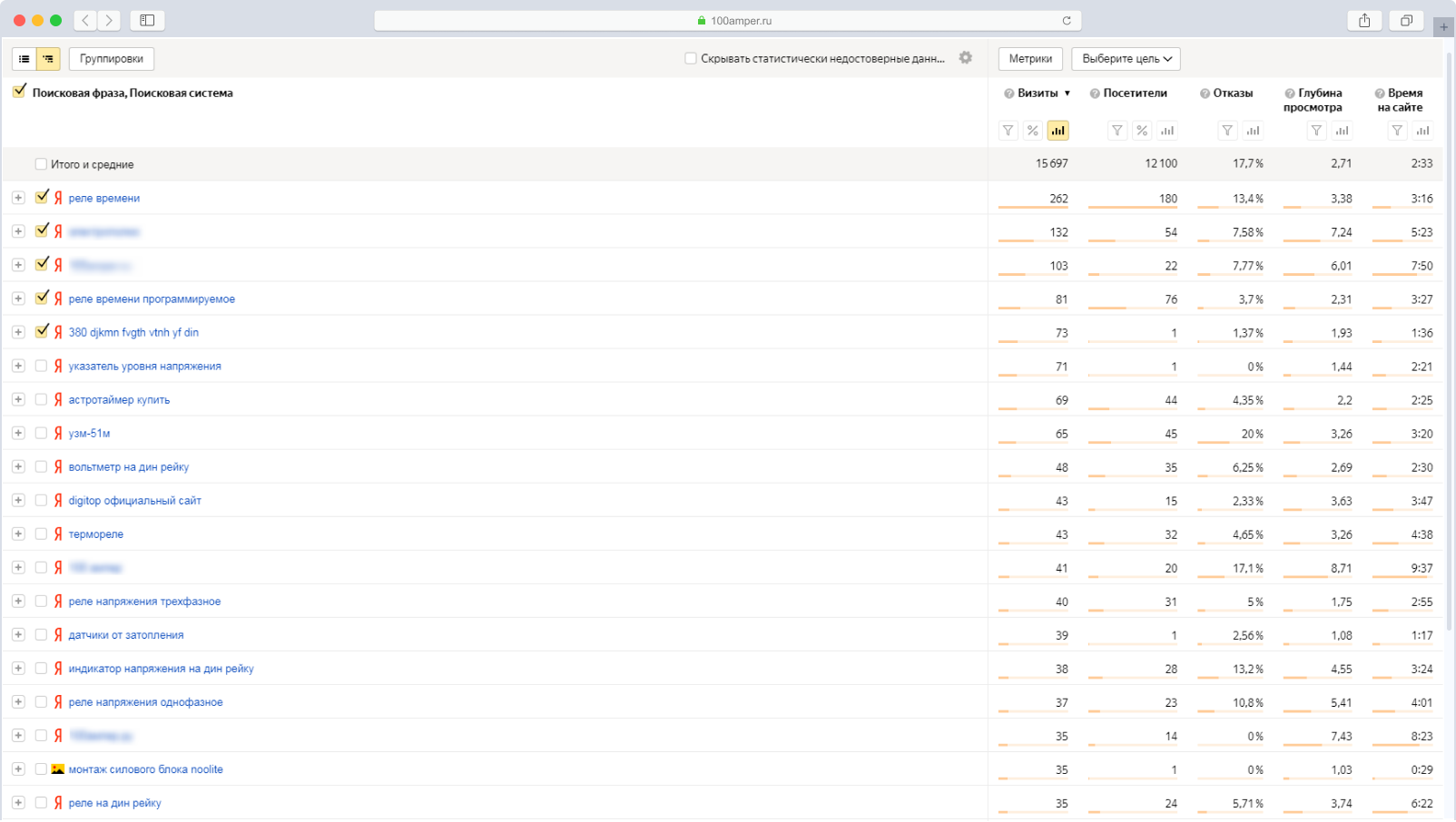 Оценив перспективы, мы составили план и приступили к работе. Сайт уже имел в топе некоторые целевые слова, но их было мало (10-15 слов), а посещаемость сайта была небольшой - не более 120 посетителей в сутки.